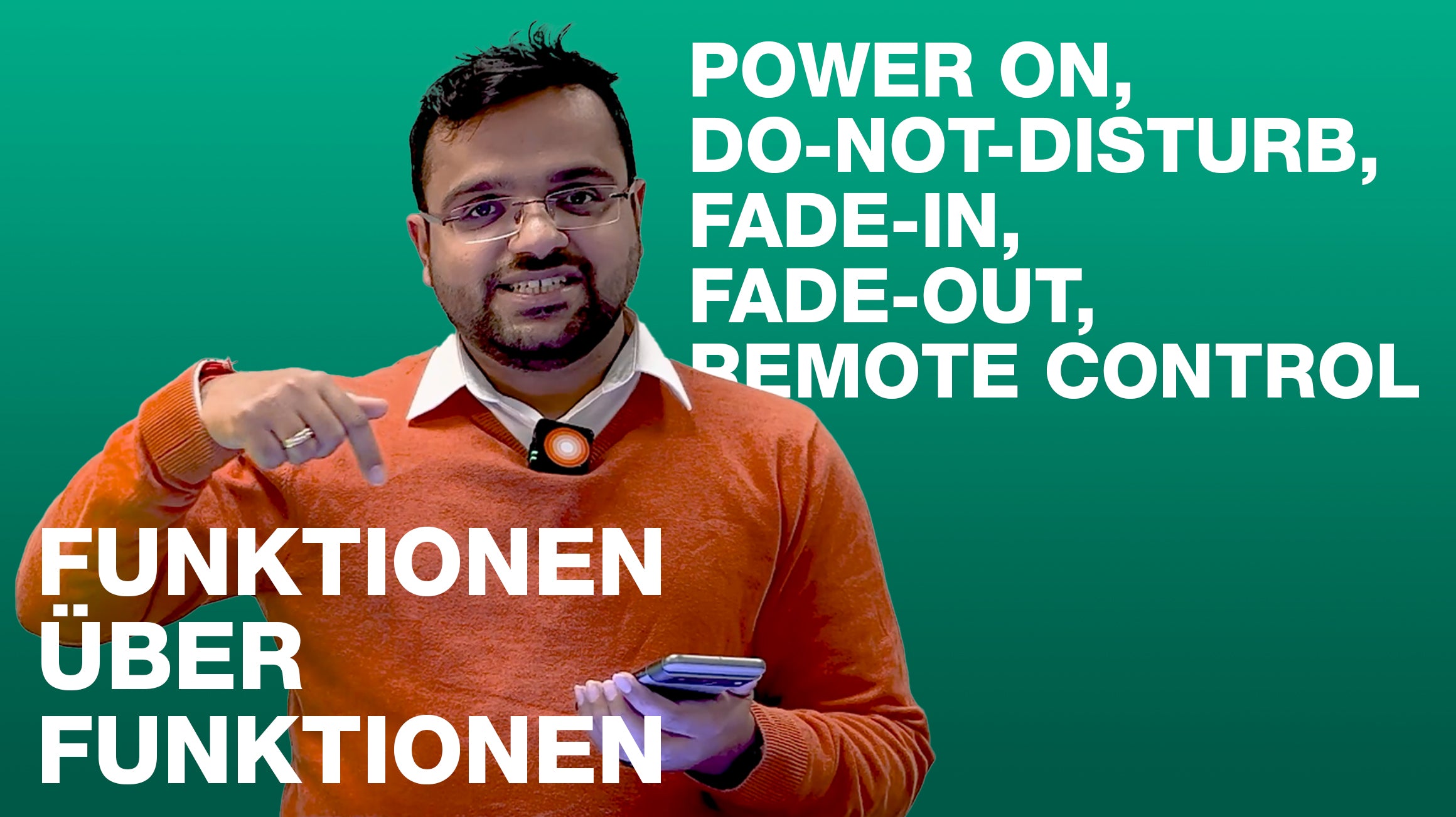 Im Video zeigen wir dir, noch ein mal mehr Zusatzfunktionen der SMART+ Produkte. Darunter sind das Verhalten beim Einschalten, Bitte-nicht-stören, Ein- und Ausblenden und die Fernbedienung.