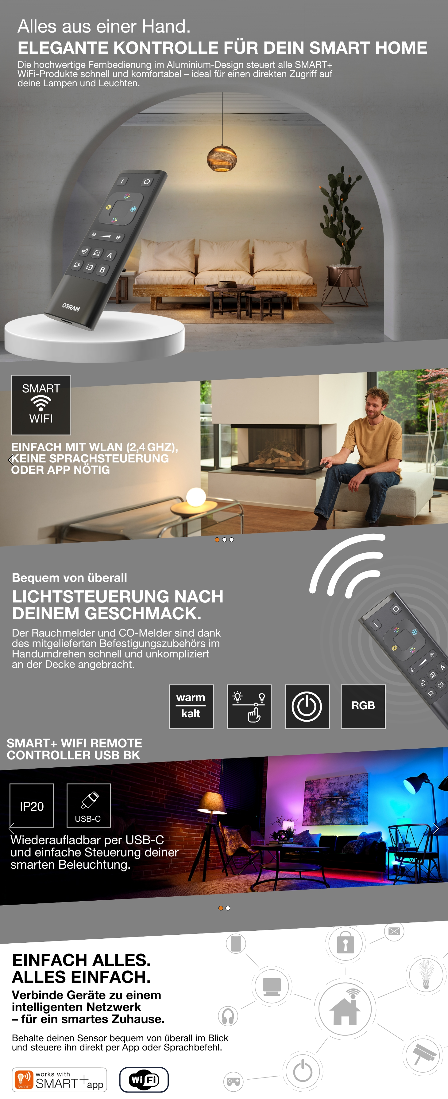 Produktvorteile: Kabellose Steuerung von kompatiblen SMART+ WiFi Produkten.