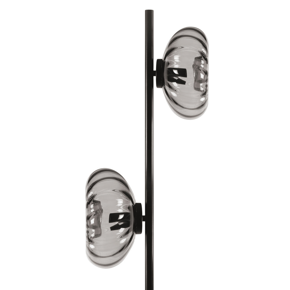 Dekorative Leuchte aus Metall und Rauchglas mit austauschbarer Lichtquelle.