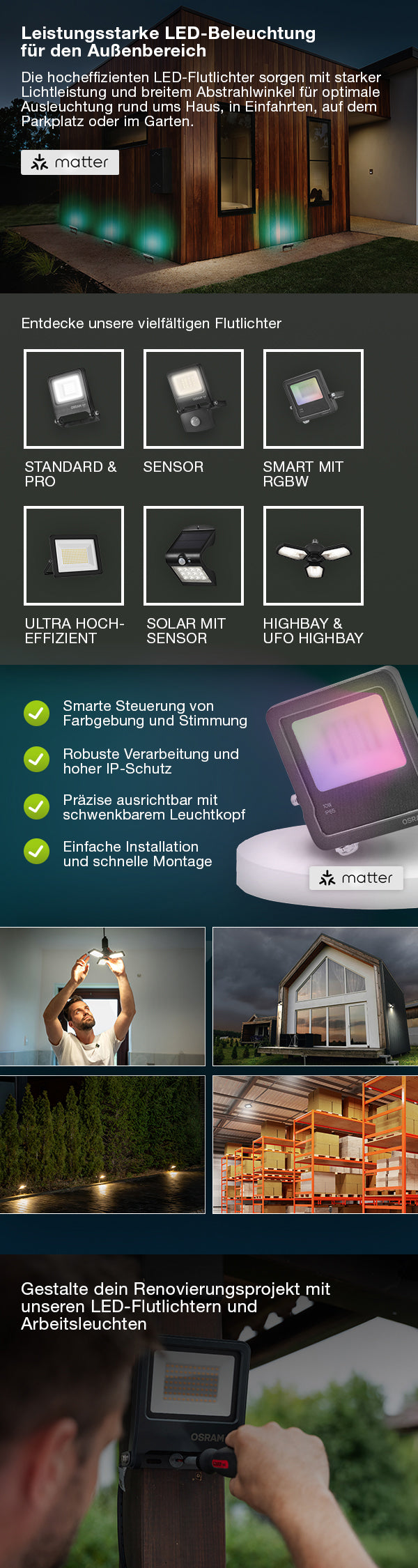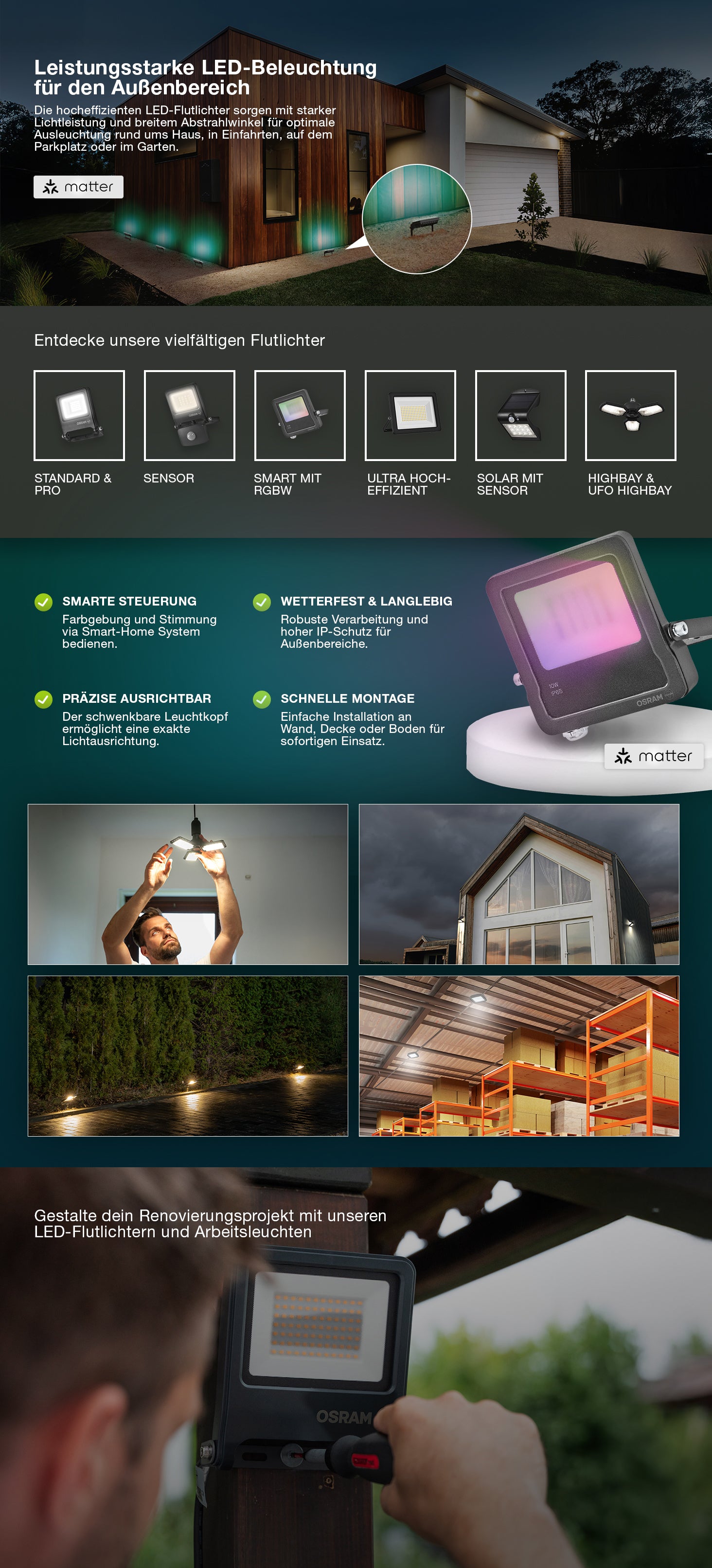• Anwendung: Perfekt geeignet für Fassadenanstrahlung und Gartenbeleuchtung, Smart-Home-System erforderlich
