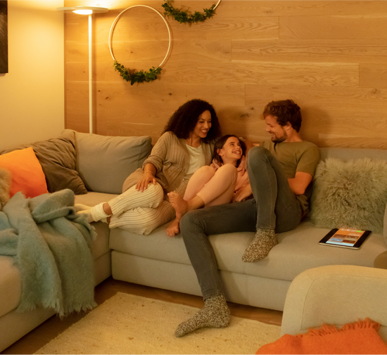 SUN@HOME bietet dir eine smarte Beleuchtung, die dem natürlichen biologischen Rhythmus des Tages angepasst werden kann und sich so spürbar positiv auf das Wohlbefinden auswirken kann.