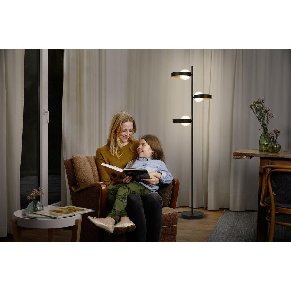 Die OSRAM DECOR Memphis Stehleuchte ist eine elegante dreiflammige Leuchte in Schwarz mit goldenen Innenflächen. Sie vereint modernes Design mit praktischer Beleuchtung – ideal für Flure, Eingangsbereiche, Wohnzimmer, Schlafzimmer, Küchen oder Büros.