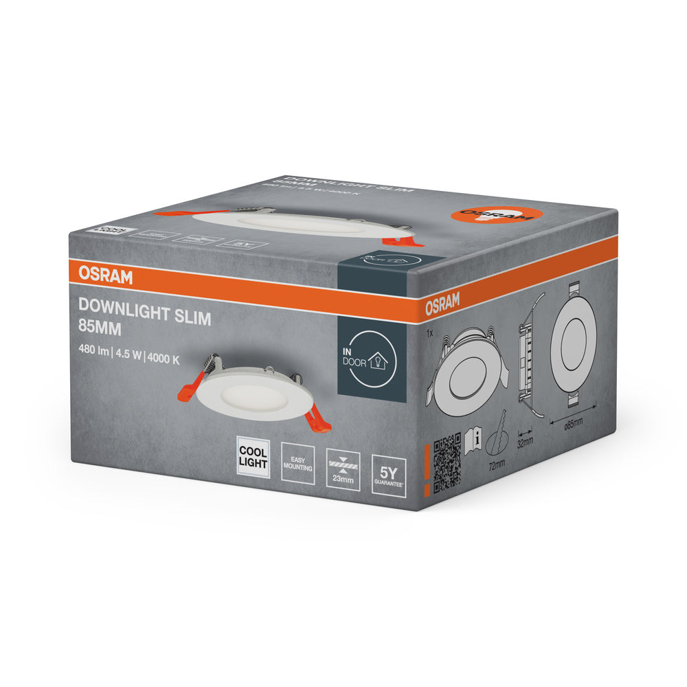 Lámpara de techo LED OSRAM RECESS SLIM DOWNLIGHT, Ø 85 mm, 220…240 V, 4,50 W / 4000 K, blanco frío