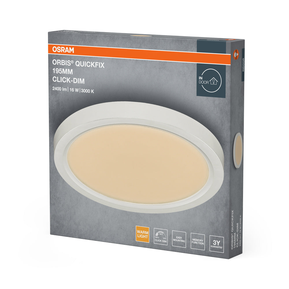 Lámpara de techo redonda OSRAM Orbis Quickfix de 195 mm y 16 W con atenuación por clic, color blanco