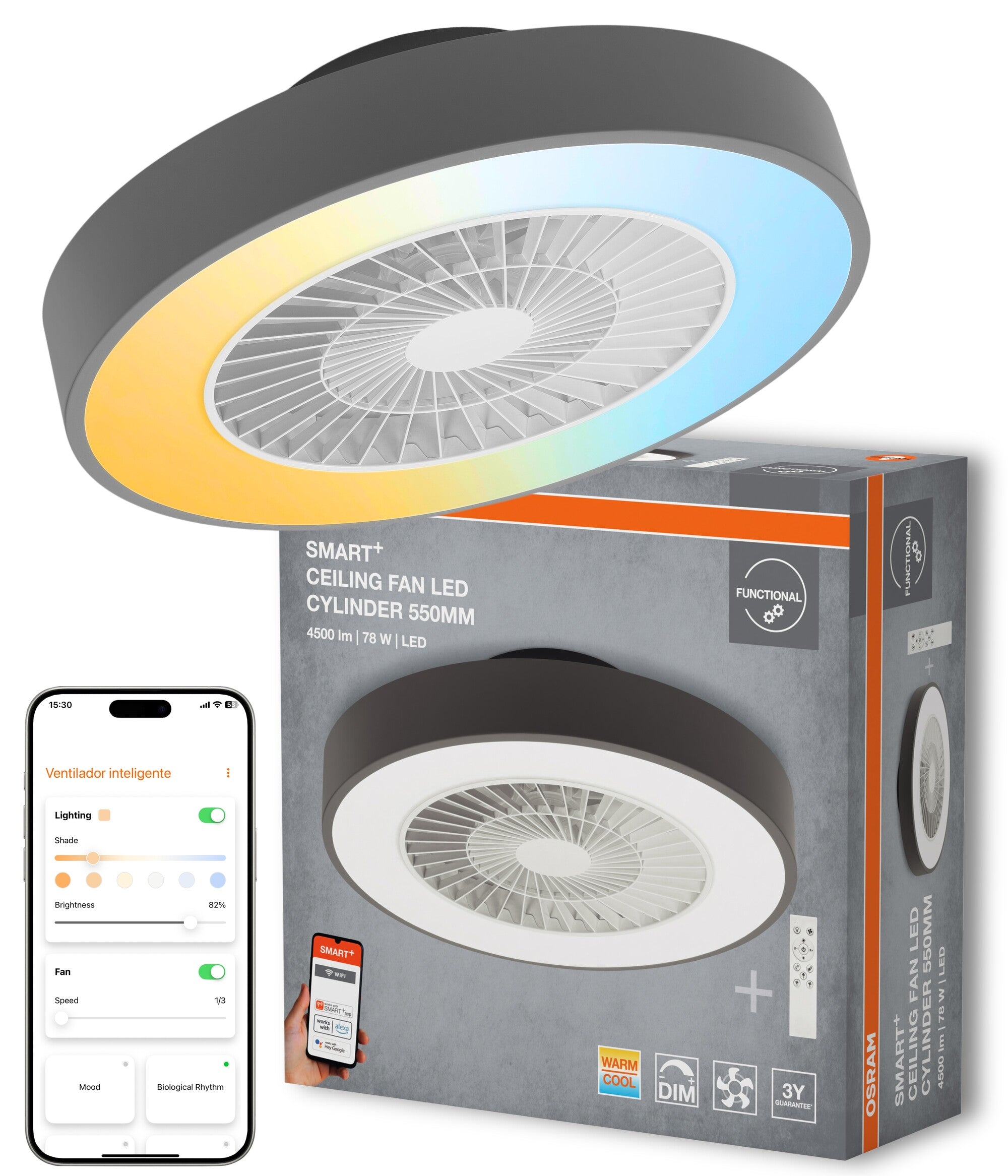 Ventiladores de techo inteligentes WiFi para diversas aplicaciones, combinando luz y ventilación.